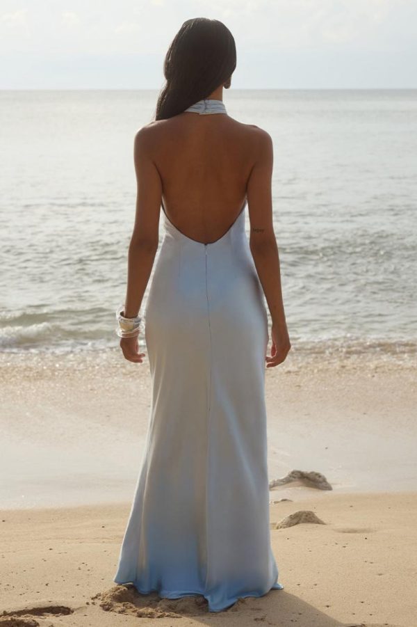 Featuring a halter neck and low open back, our Brigitte Maxi Dress drapes over the body for a feminine look.