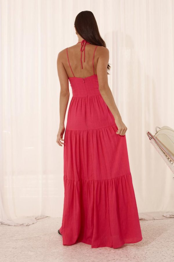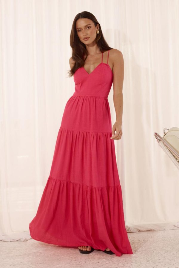 Our Chiara Maxi Dress features a tiered skirt and tie up detail around the neckline, this piece will be statement at your next event.