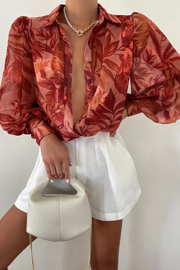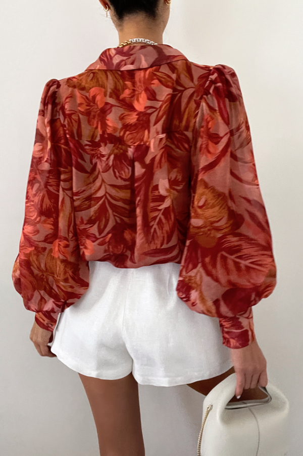 Our Fleetwood Blouse features a long puff sleeve with button detailing, centre-front buttons, and a collar. This garment is slightly sheer, no lining and no stretch throughout the garment. 100% Polyester. Please refer to care label for garment care instructions.